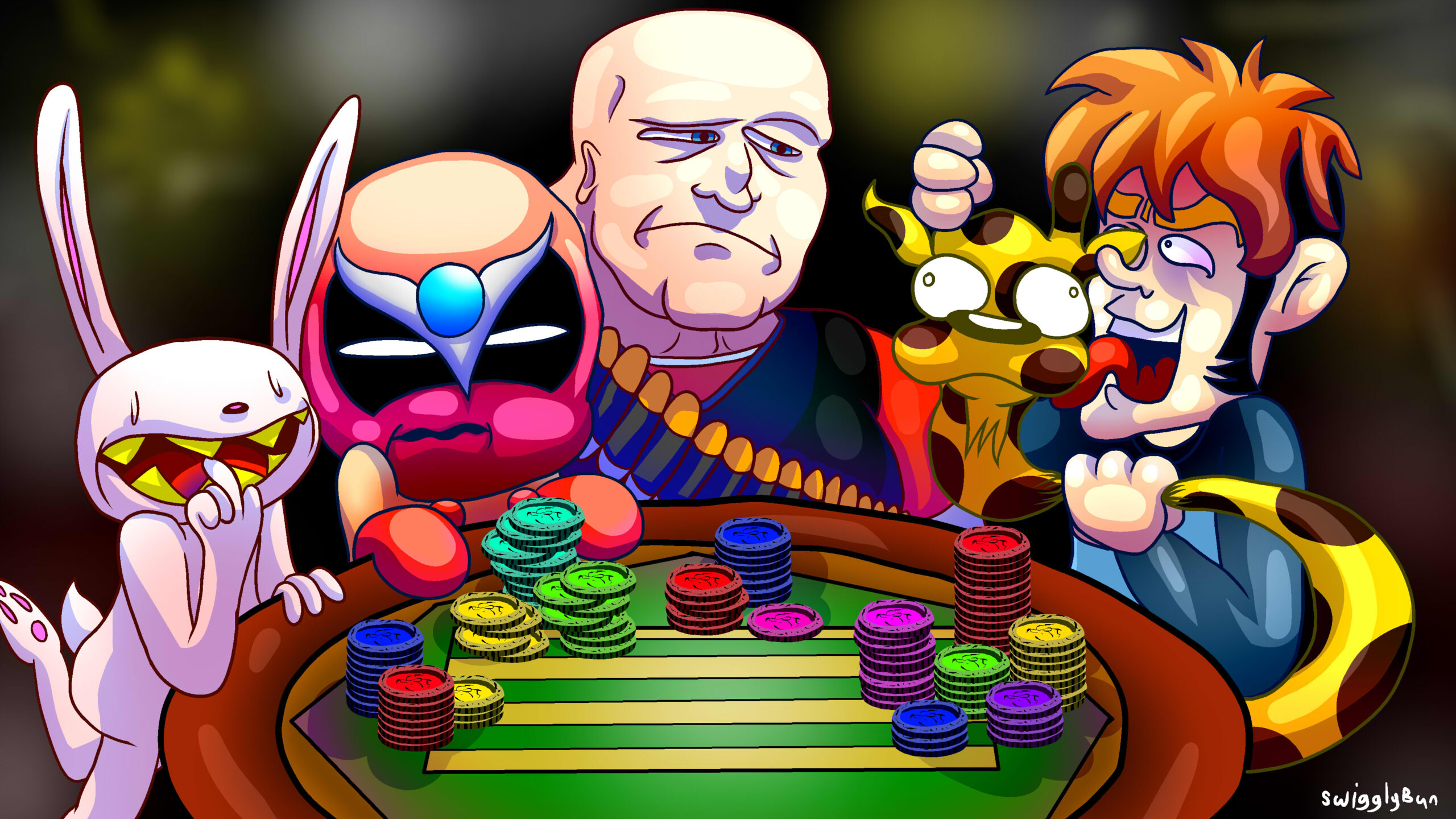 P0KERNIGHT AT THE INVENTORY REMASTER IS OUT! GO BUY IT ON STEAM YAAAAAAY! I originally was gonna submit this as an artwork for the contest, but ended up missing the deadline. so I decided to release it on the day p0kernight comes out. hope u all likey OwO